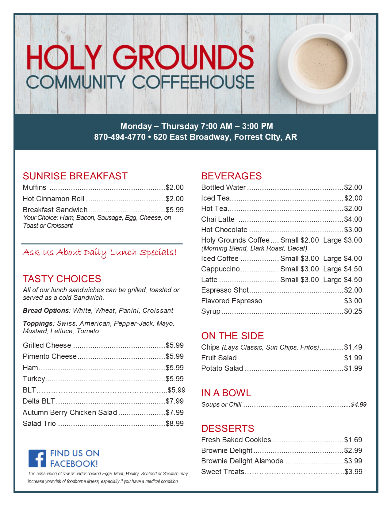 Located in Forrest City, Arkansas, Holy Grounds is a faith-based organization offering hospitality, inspiration, and delicious fair-trade coffee, tea & snacks to the Delta community.